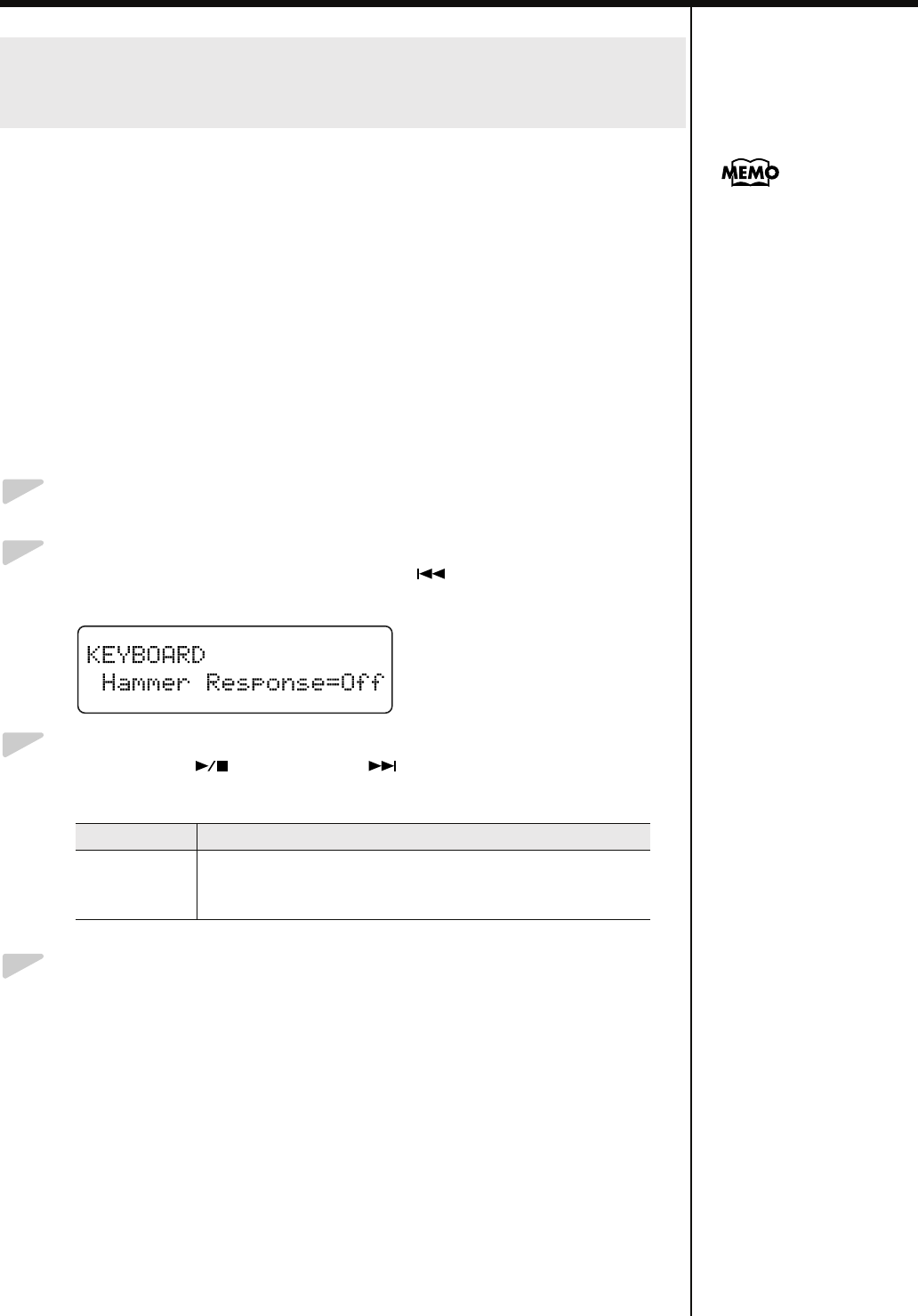 ‘Hammer Response’ in het KEYBOARD scherm te selecteren.
