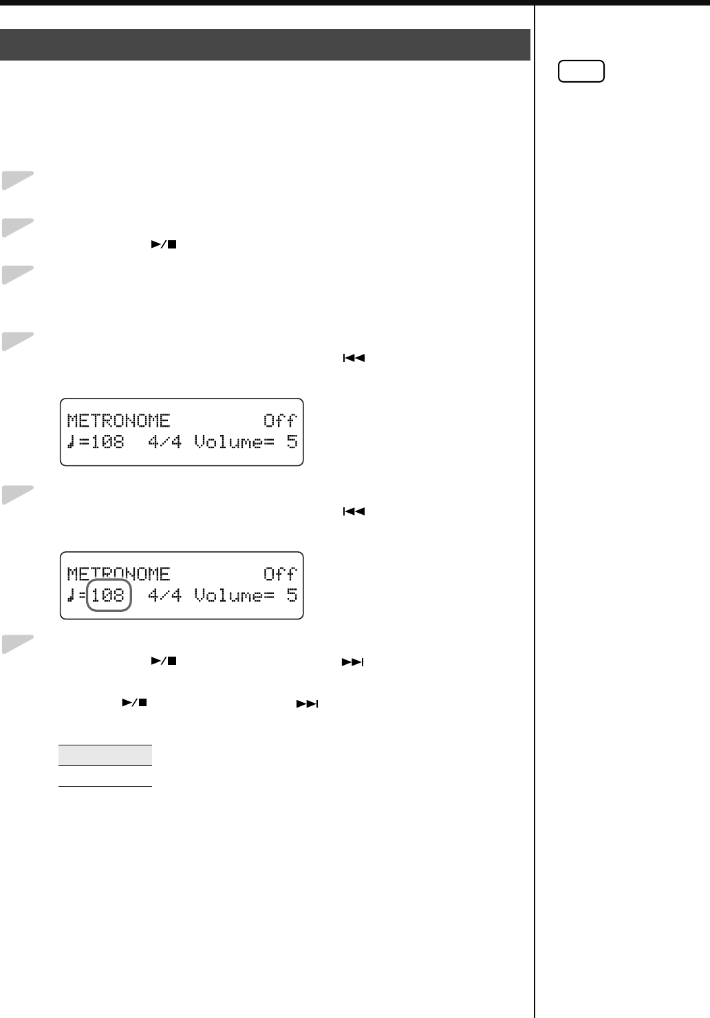 Hiermee wijzigt u het song tempo. Het wijzigen van het tempo heeft geen